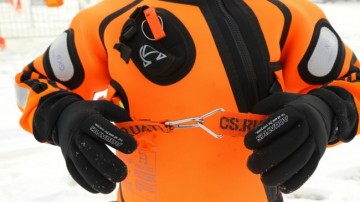 В холодное время года спасатели на воде носят специальные гидрокостюмы. Эта экипировка хорошо защищает от воздействия воды и холода, сделана из особого материала – неопрена – и за яркий цвет зовётся «рыжик».
