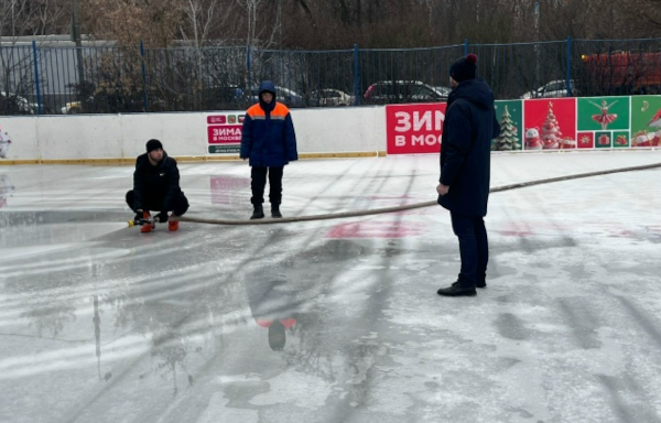 На катке на Дорогобужской улице (владение 13) идет заливка льда. Объект 21 ноября посетил глава управы Можайского района Алексей Мазанов.