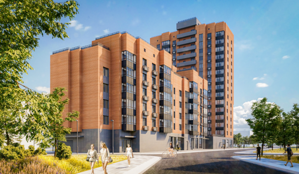 Площадь трехсекционного здания составляет 14 504,5 кв. м. В нем разместилась 121 квартира.