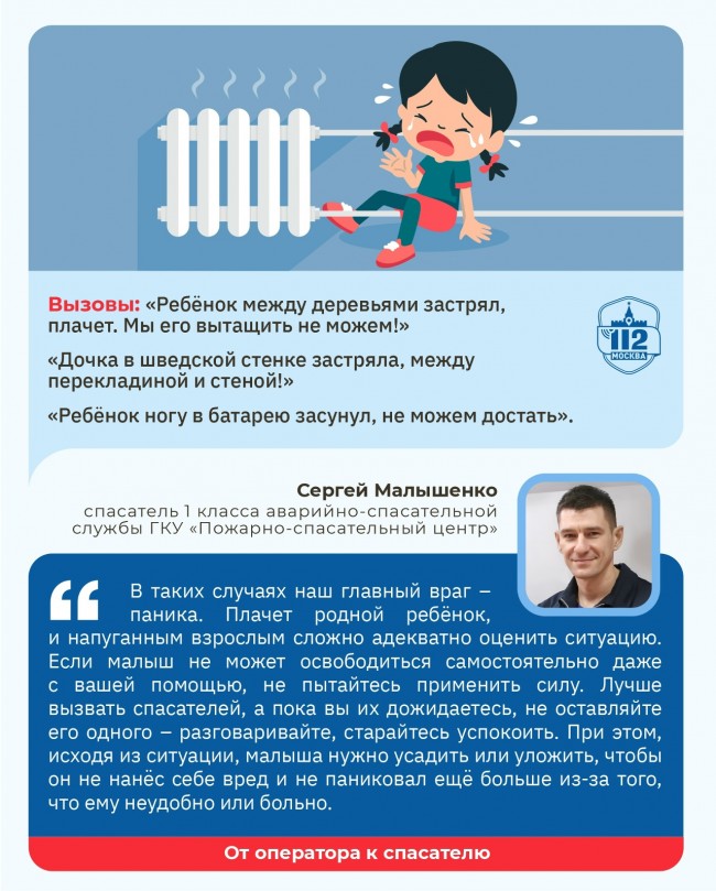 Это потом мамы и папы рассказывают о забавных и не очень происшествиях: горшок на голову надел, рука в отверстии стула застряла, дверь захлопнул… А первыми слушателями этих историй зачастую оказываются специалисты Службы 112 Москвы, которые передают вызовы спасателям и пожарным.