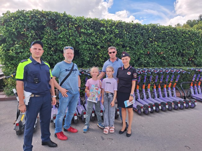 Сотрудники ГИБДД рассказали о состоянии дорожно-транспортного травматизма на дорогах Западного округа столицы, привели примеры дорожно-транспортных происшествий с лицами, передвигающимися на СИМ, обратив особое внимание на необходимость спешиваться при переходе дороги по пешеходному переходу, не нарушать требования сигналов светофора, быть особо внимательными в дворовой территории и обязательно использовать защитную экипировку и светоотражающие элементы. По окончанию беседы пользователям СИМ вручались памятки с основными Правилами дорожного движения для СИМ, а детям красивые раскраски.